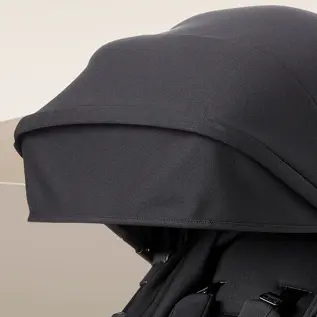 Fully extendable and ventilated UPF50+ hood with a pull-out sun peak and viewing window.